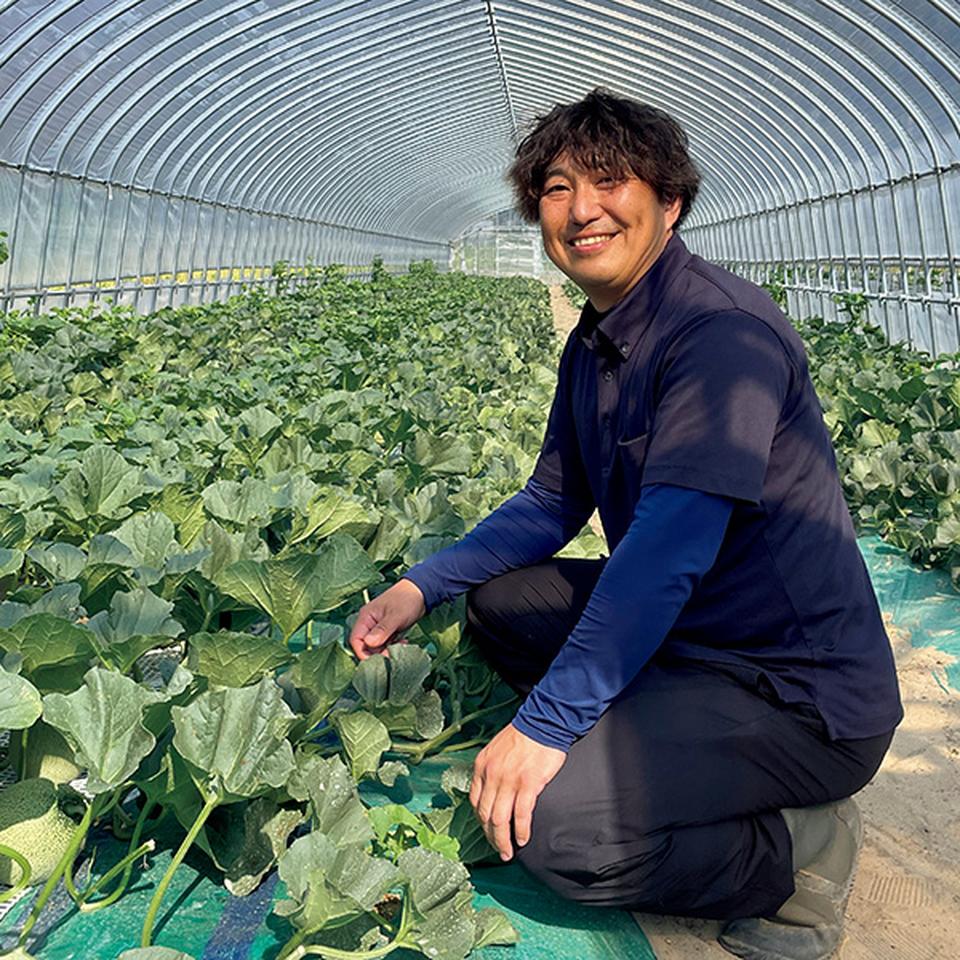 メロン栽培に情熱を注ぐ早坂さんの大玉メロン。大玉で香りが強く、青肉の爽やかで濃い甘さをお召し上がりください。