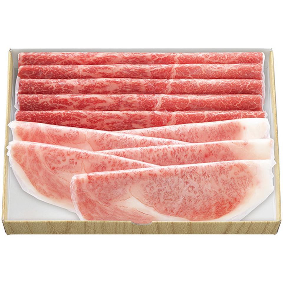 松阪牛のロース肉ともも肉をしゃぶしゃぶ用にカットしました。ごまだれ、ぽん酢をつけてお召しあがりください。