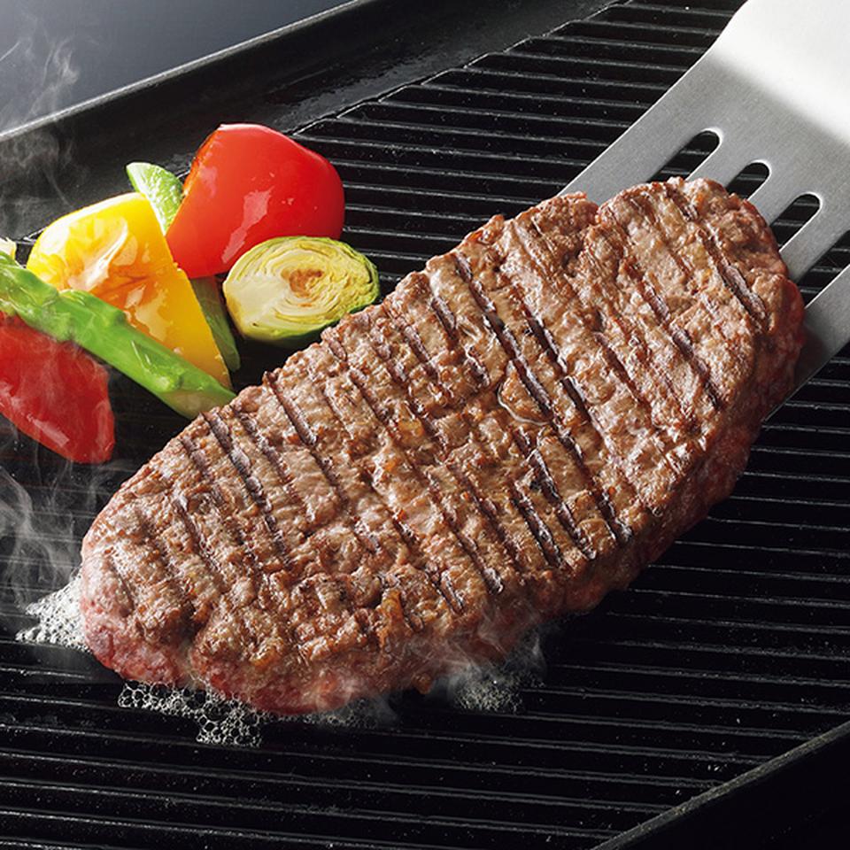 タスマニアビーフのかたロースを粗挽きし、ステーキに仕立てました。
