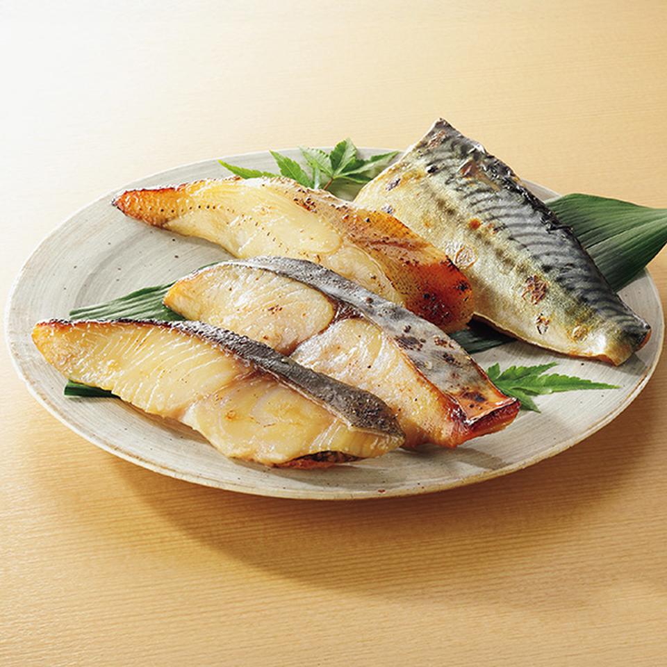 銀ダラ粕漬50g×2、本さわら酒粕白味噌漬50g×2、かれい酒粕白味噌漬50g×2、さば酒粕赤味噌漬50g×2