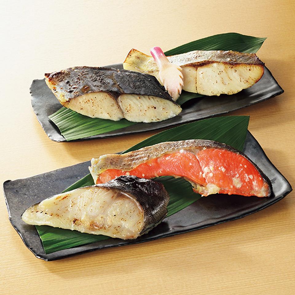 銀たら加賀味噌漬70g、紅鮭加賀味噌漬70g、さわら加賀味噌漬70g、ぶり加賀味噌漬70g、銀たら西京漬70g、紅鮭西京漬70g、さわら西京漬70g、銀ひらす西京漬70g