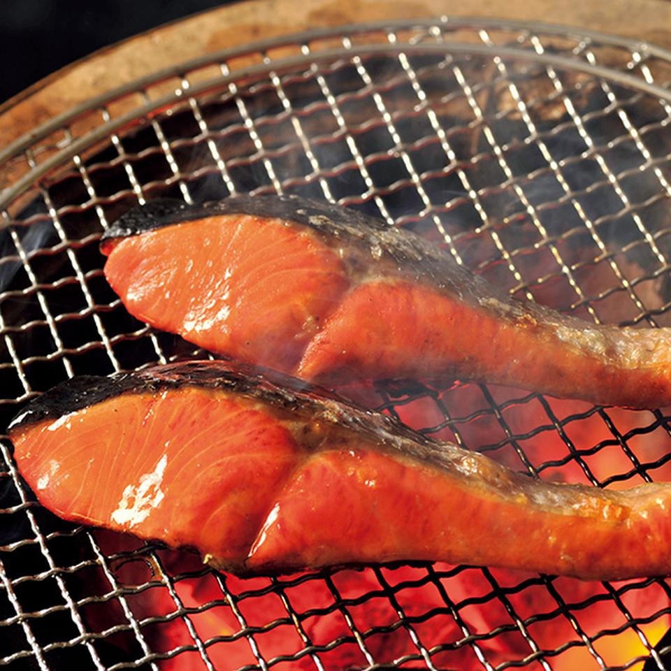 ロシア産の紅鮭を塩水に漬け込んだ後、低温で熟成。更に軽く干し上げることで紅鮭の旨みを引き出しました。