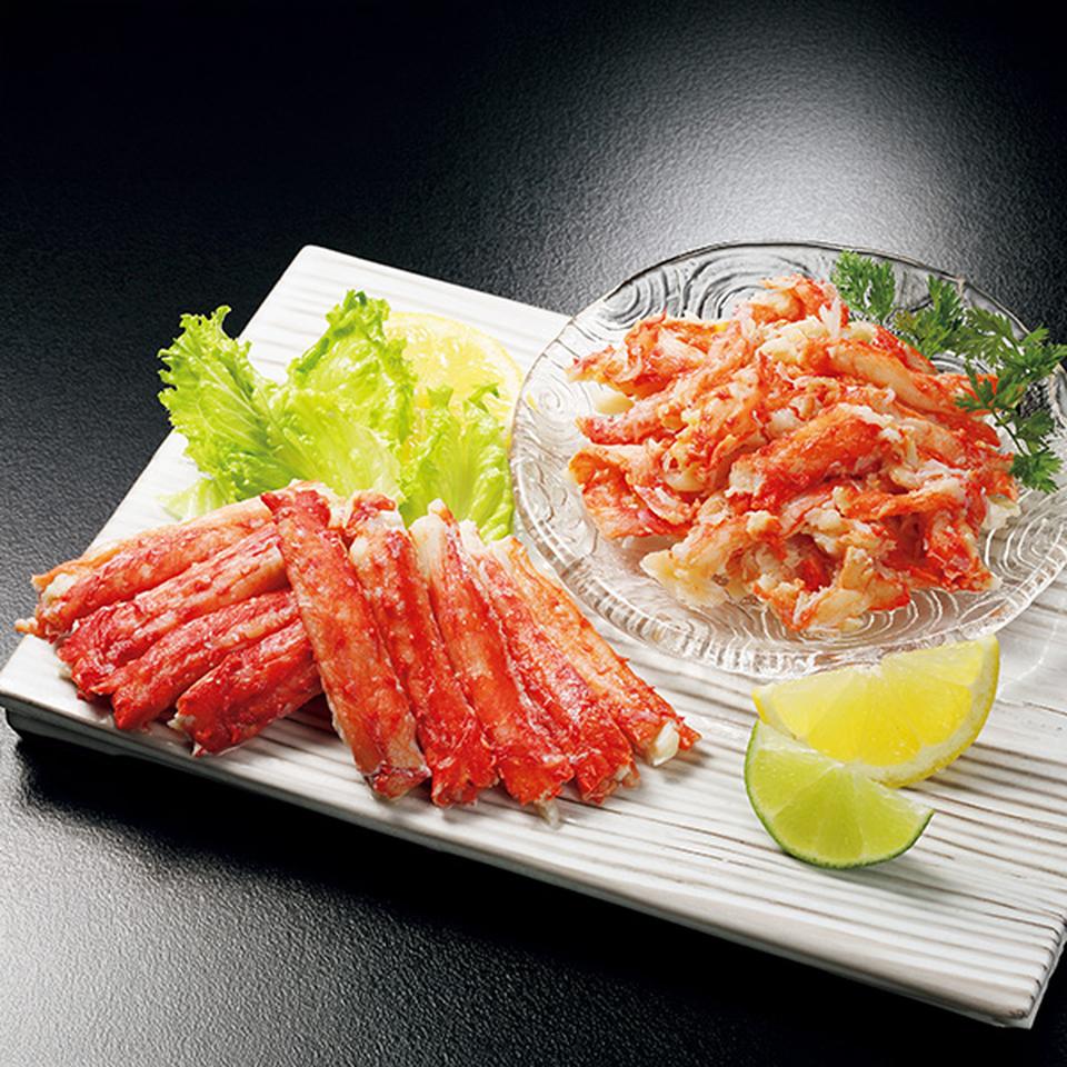 たらばがにほぐし身(北海道産原料)300g、たらばがに棒むき身(北海道産原料)130g