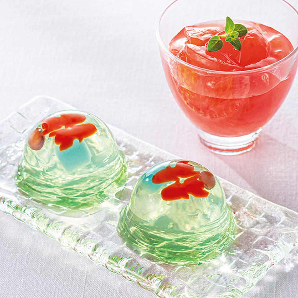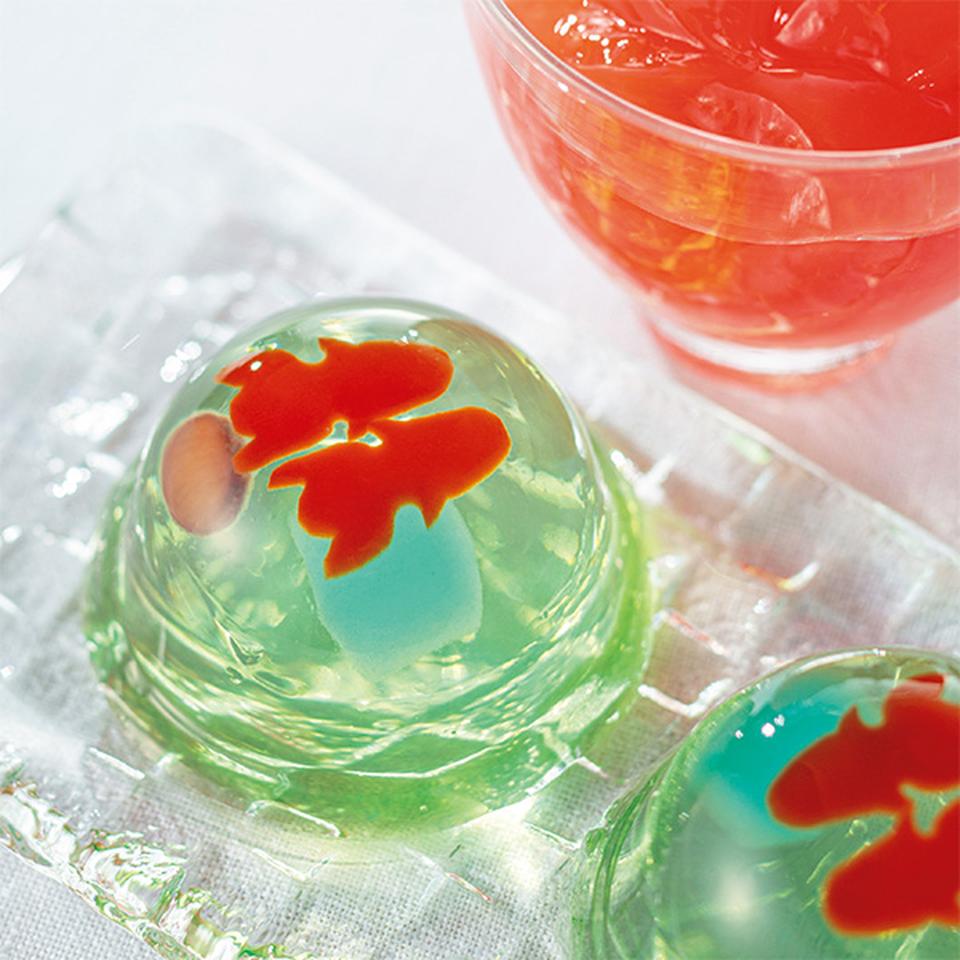 可愛らしい羊羹製の金魚を浮かべた「金魚」など、見た目も楽しめる涼菓詰合せ。