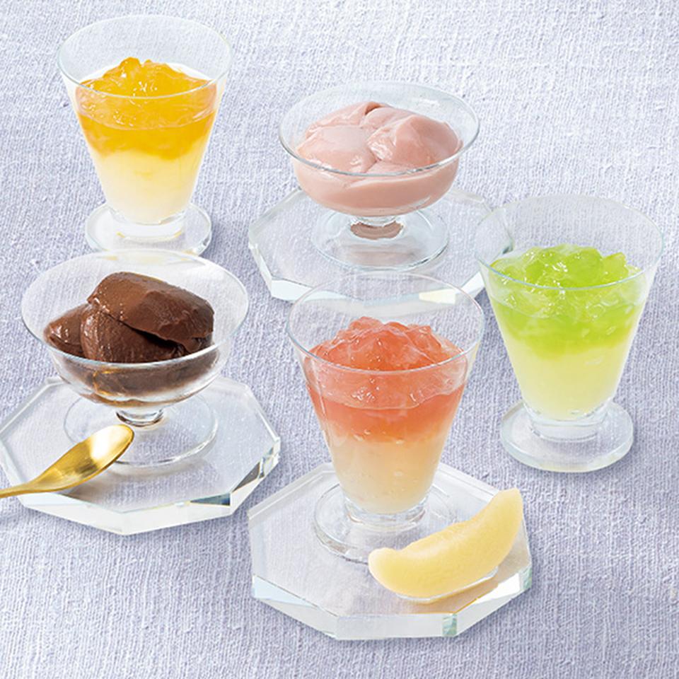 カカオフルーツジュレ8(オレンジ3、白桃3、ラ・フランス2)、ムースショコラ2(ショコラ、ストロベリー)