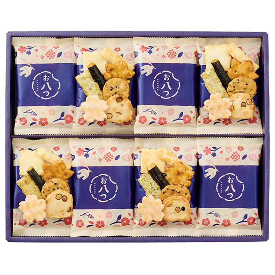 国産米を100%使用したあられ・煎餅の詰合せ。1袋8種類の味が楽しめます。