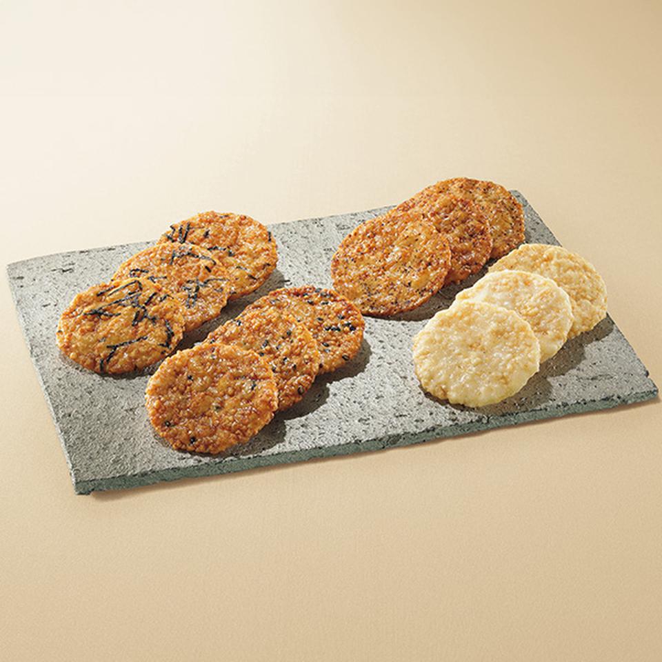 窯ど炊きしたご飯の底に付いたおこげをイメージしたお煎餅です。4種類を詰合せました。