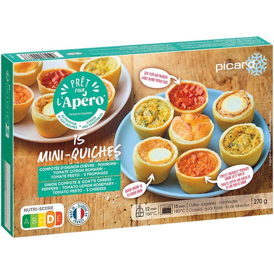 エビの蒸し春巻き200g(8本入、ソース20g)、ムール貝の漁師風400g、5種類のミニキッシュ270g(15個入)