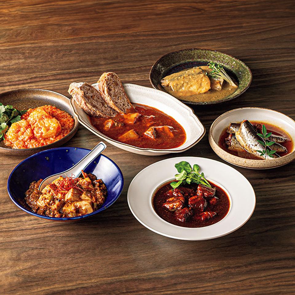プロのひと品シリーズ監修シェフ4名によるメニュー6種のセット。