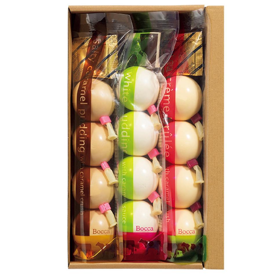 白いプリン4、クレームブリュレ4、塩キャラメルプリン4