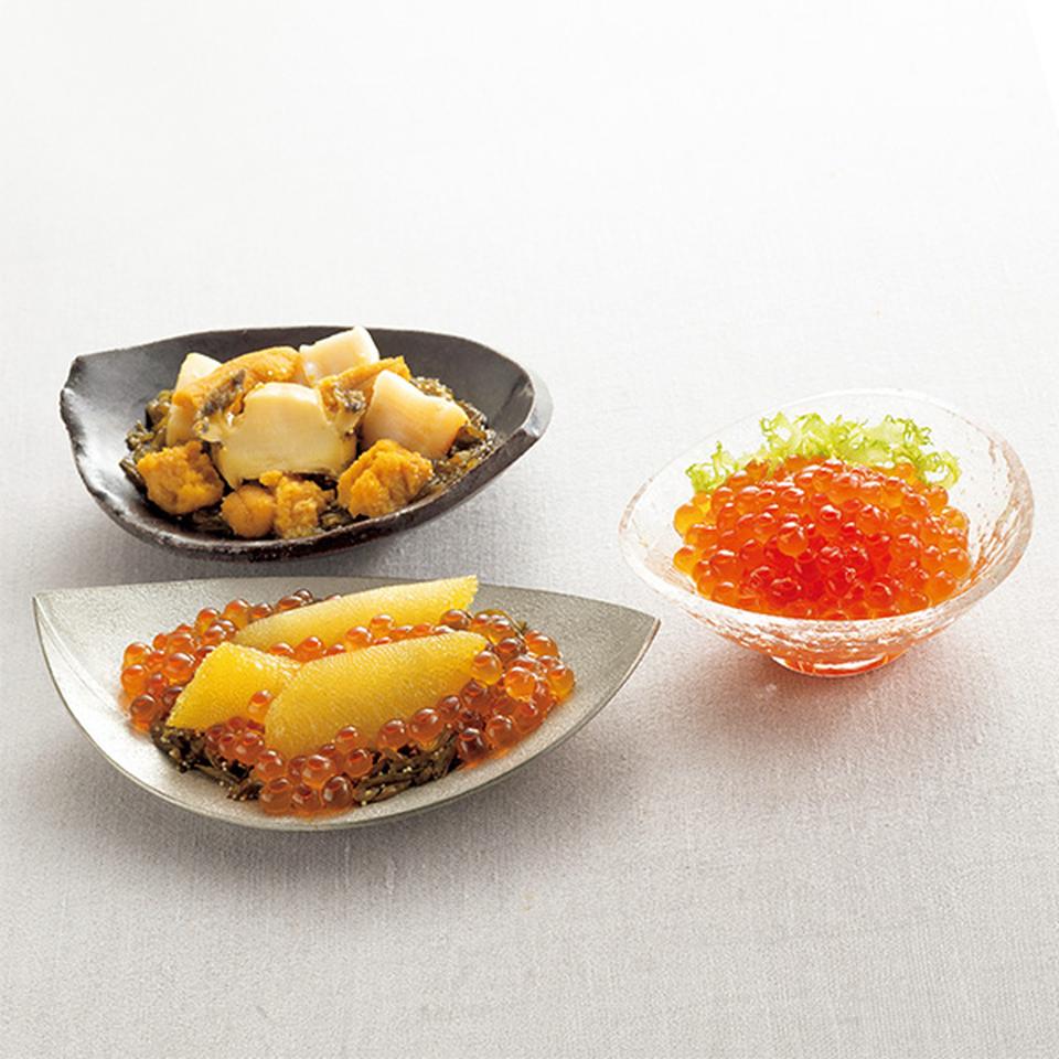 三種海鮮漬80g×2、数の子海宝漬80g×2、いくら醤油漬50g