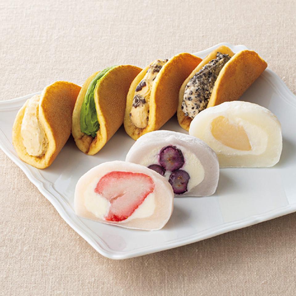 銀座フルーツ大福(いちご、白桃、ブルーベリー)、花園どらバターサンド(宇治抹茶、ラムレーズン、丹波栗、クッキー&クリーム)
