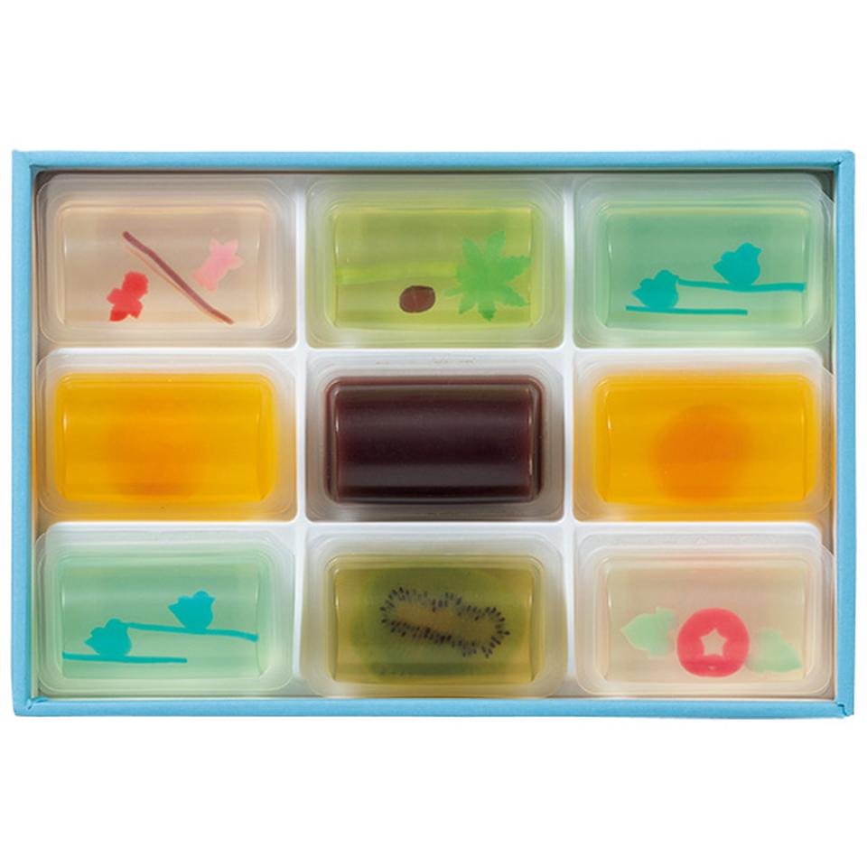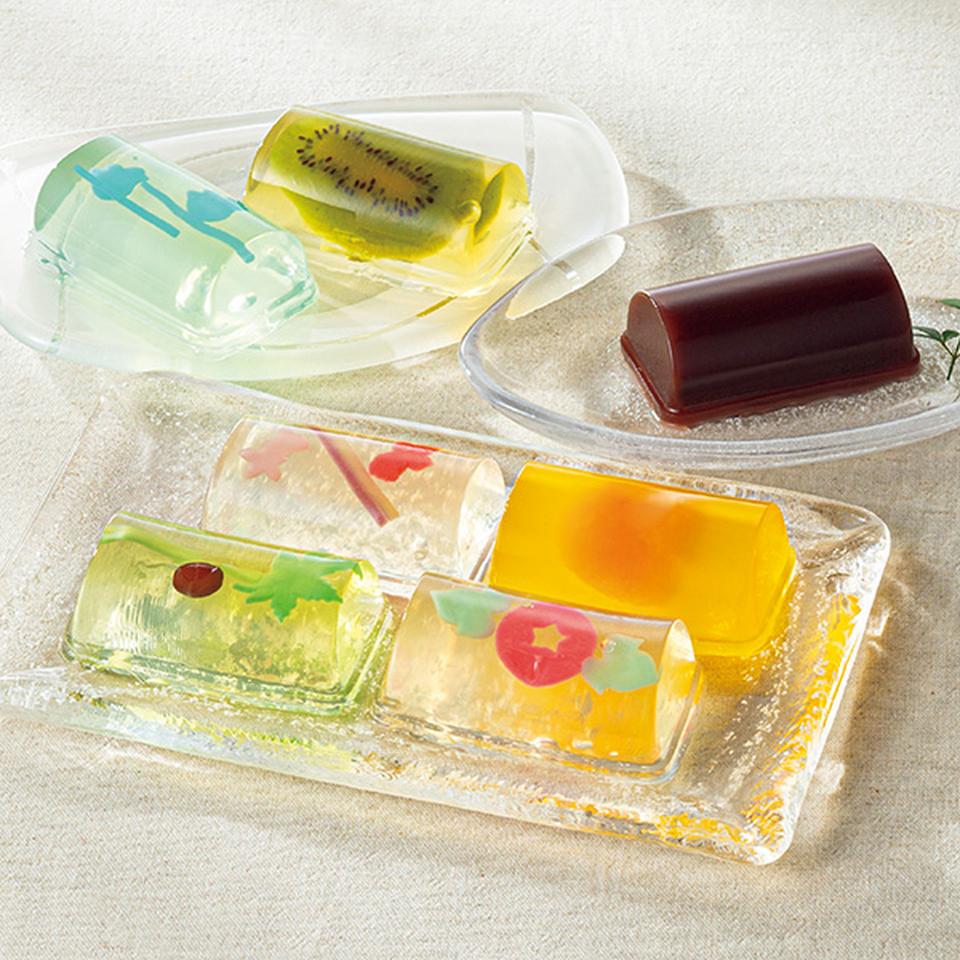 かわいい創作ゼリーとフルーツゼリー、人気の水ようかんをセットに。