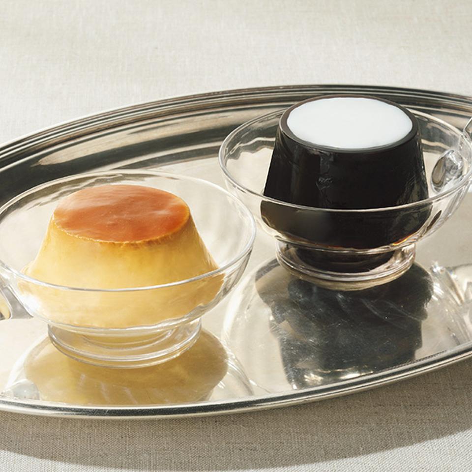 丸福こだわりの珈琲ゼリーとカスタードプリンをセットに。