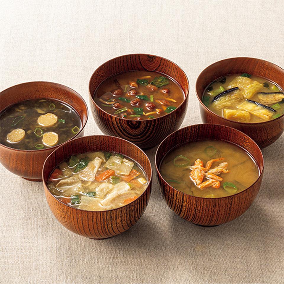 いつものおみそ汁贅沢(焼なす・なめこ・豚汁)各4、いつものおみそ汁贅沢(炒め野菜・とうふ・かに汁・海苔)各2 計20