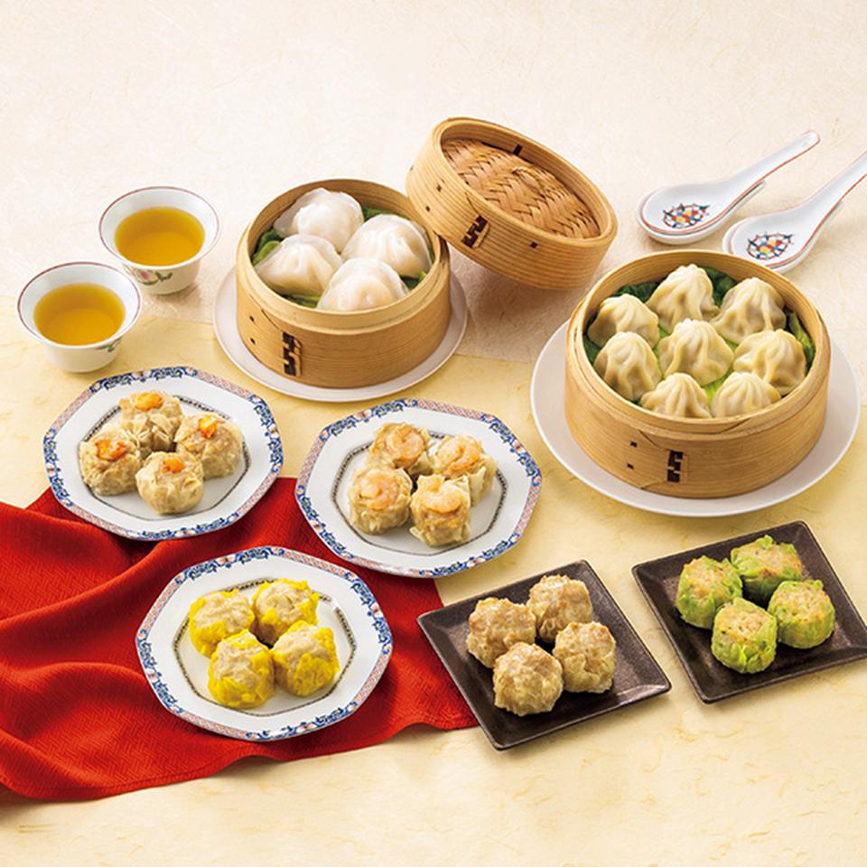 5種の焼売と蝦仁餃子、小籠包を詰合せた彩りも華やかなセットです。