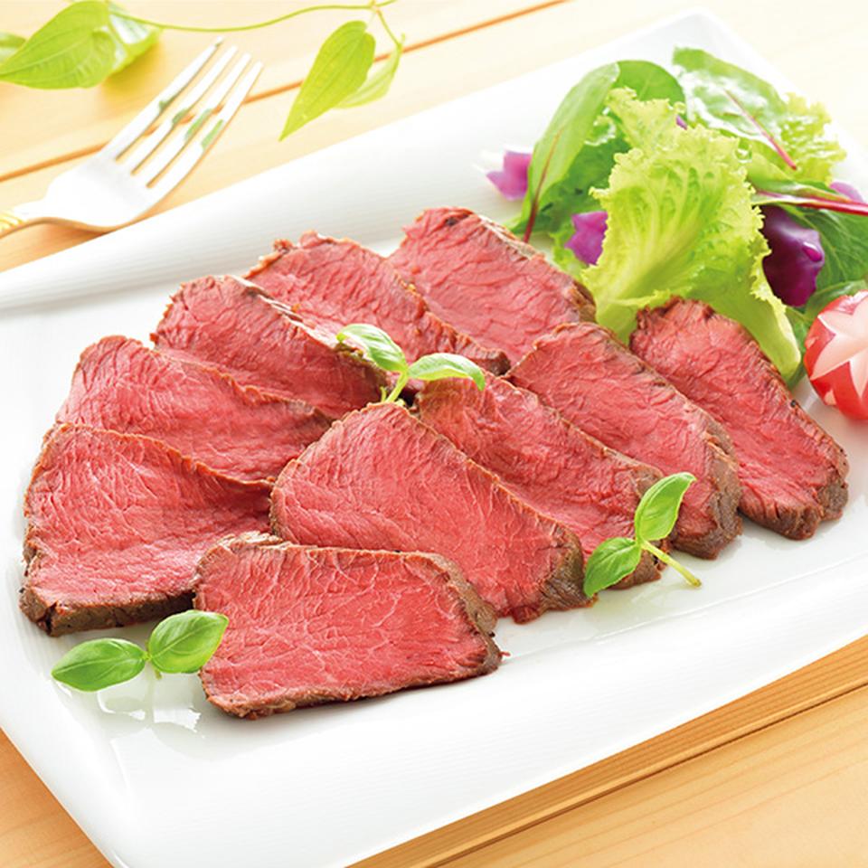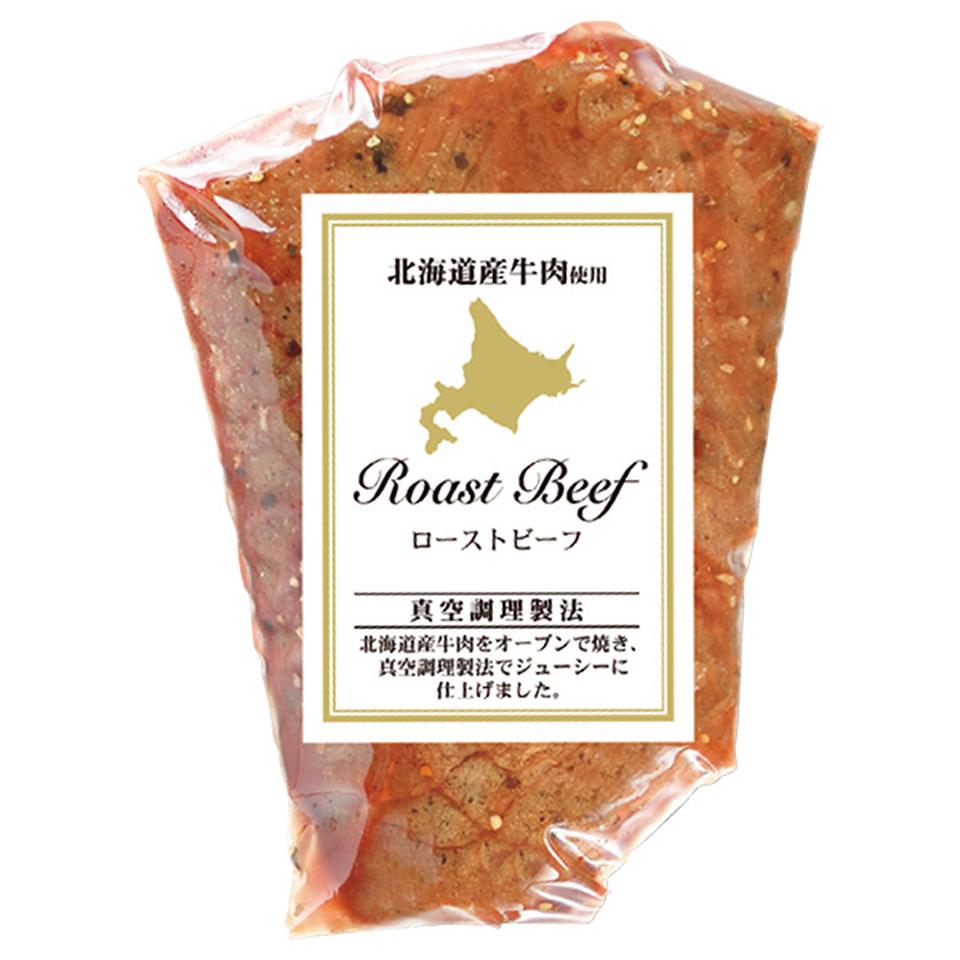 北海道産牛肉を低温調理で仕上げたローストビーフです。形がふぞろいな為、大容量を実現しました。
