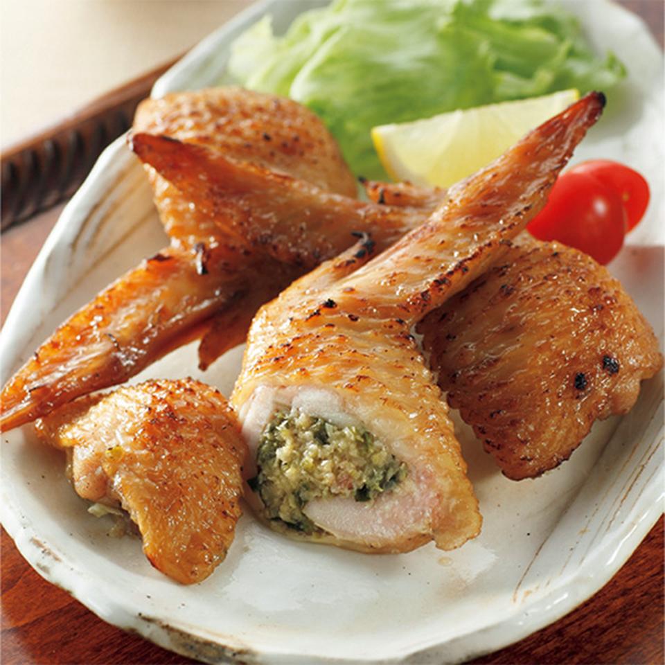 霧島黒豚と野菜の餡、チーズを詰めた手羽先のセットです。揚げたり焼いたり、お好みでご賞味ください。