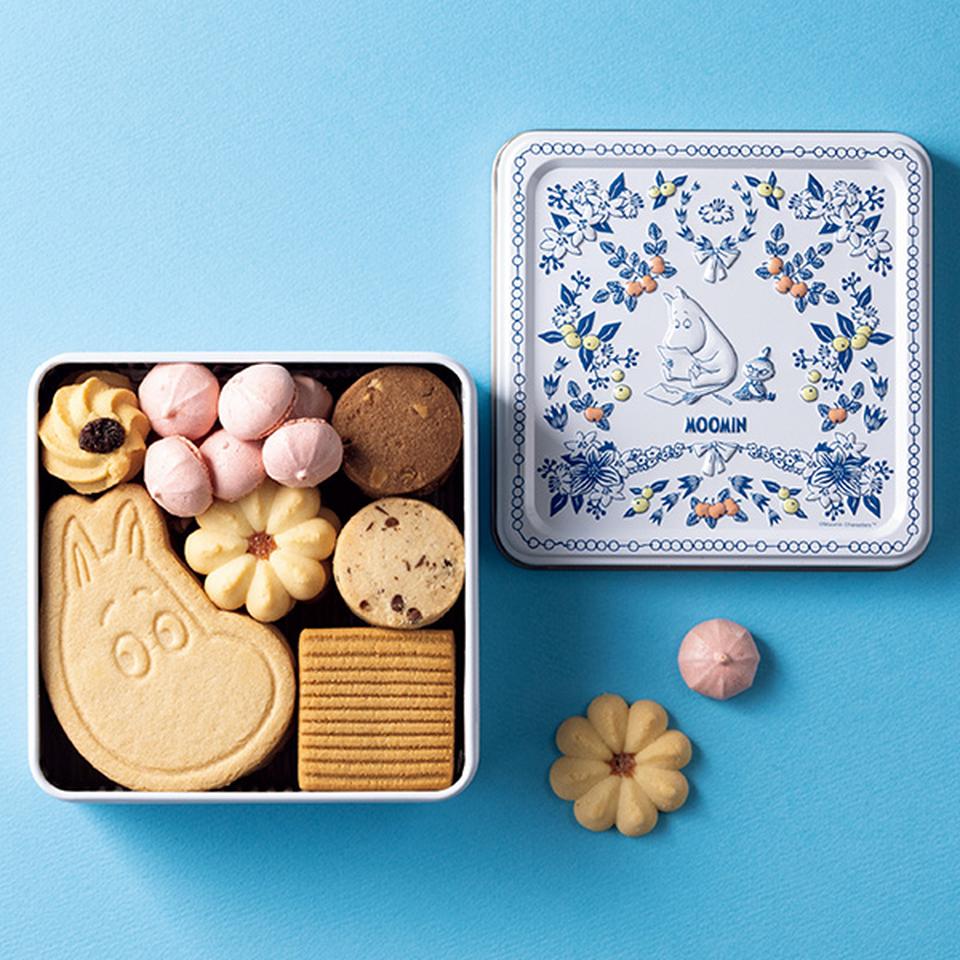 ムーミンのフェイス型クッキーとアソートクッキーを詰合せ。食べ終わった後は小物入れに。