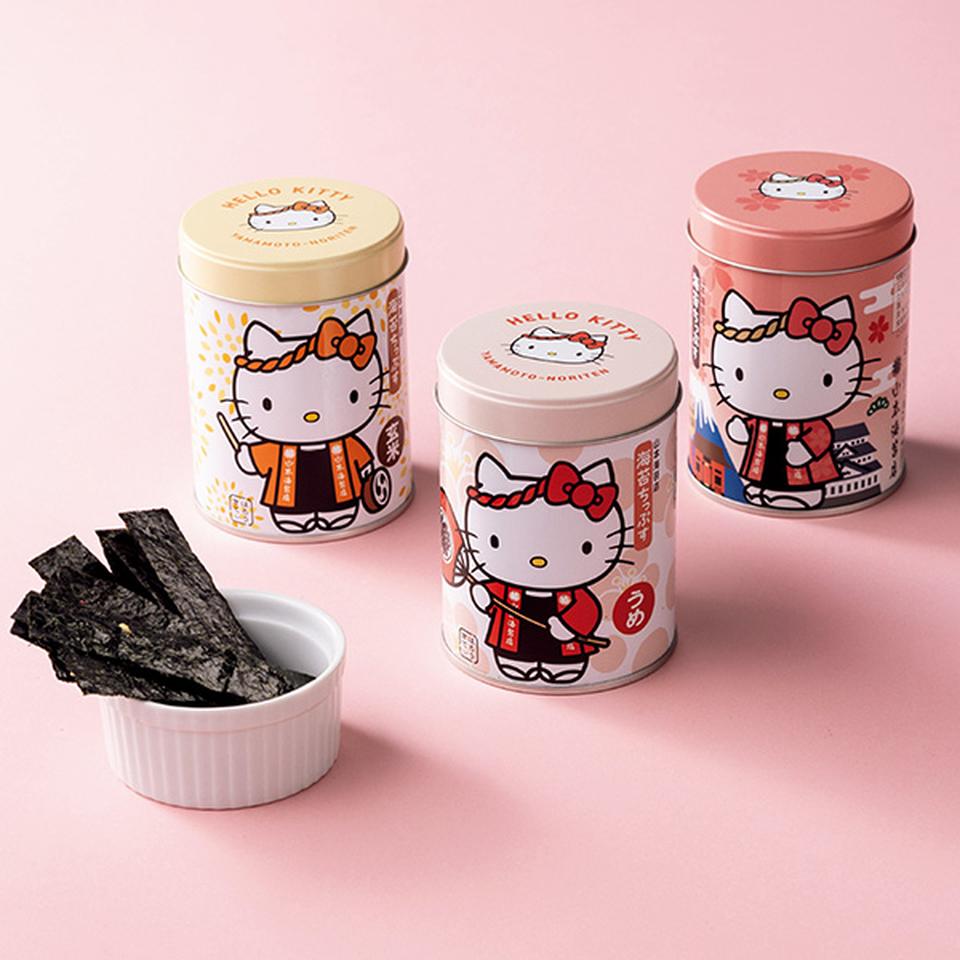 上質な2枚の海苔で厳選具材をサンドした海苔スナック。法被姿のハローキティがかわいい。