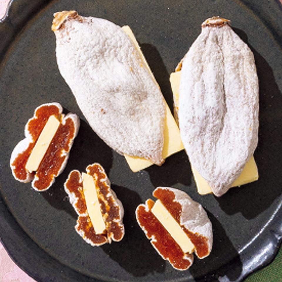 能登地方の銘品志賀町の干し柿、ころ柿にバターをサンドしました。