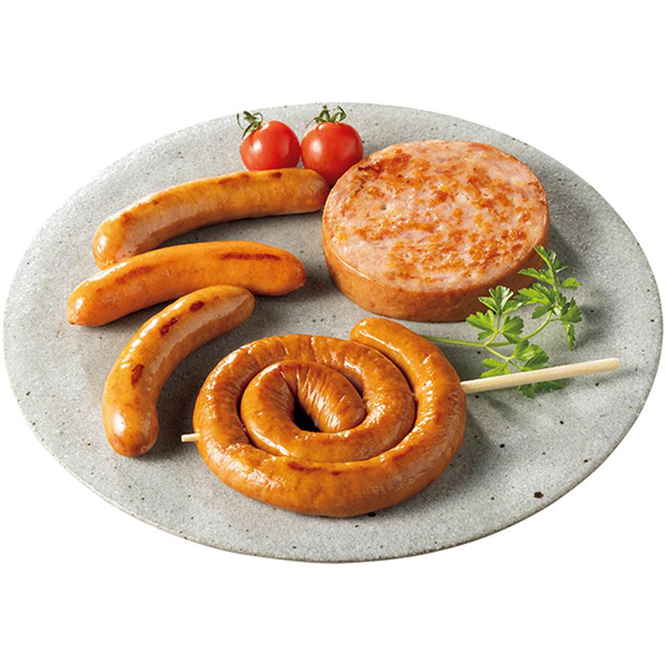 ギフト限定シャウエッセン100g×2、シャウエッセンおいちぃず100g、シャウエッセンチョリソー100g、ぐるぐる巻いたシャウエッセン122g、シャウステーキ122g