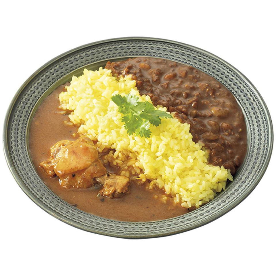 鶏だしとココナッツを合わせた水たきスープカレーと、鶏肉の旨みが詰まったキーマカレーのセットです。