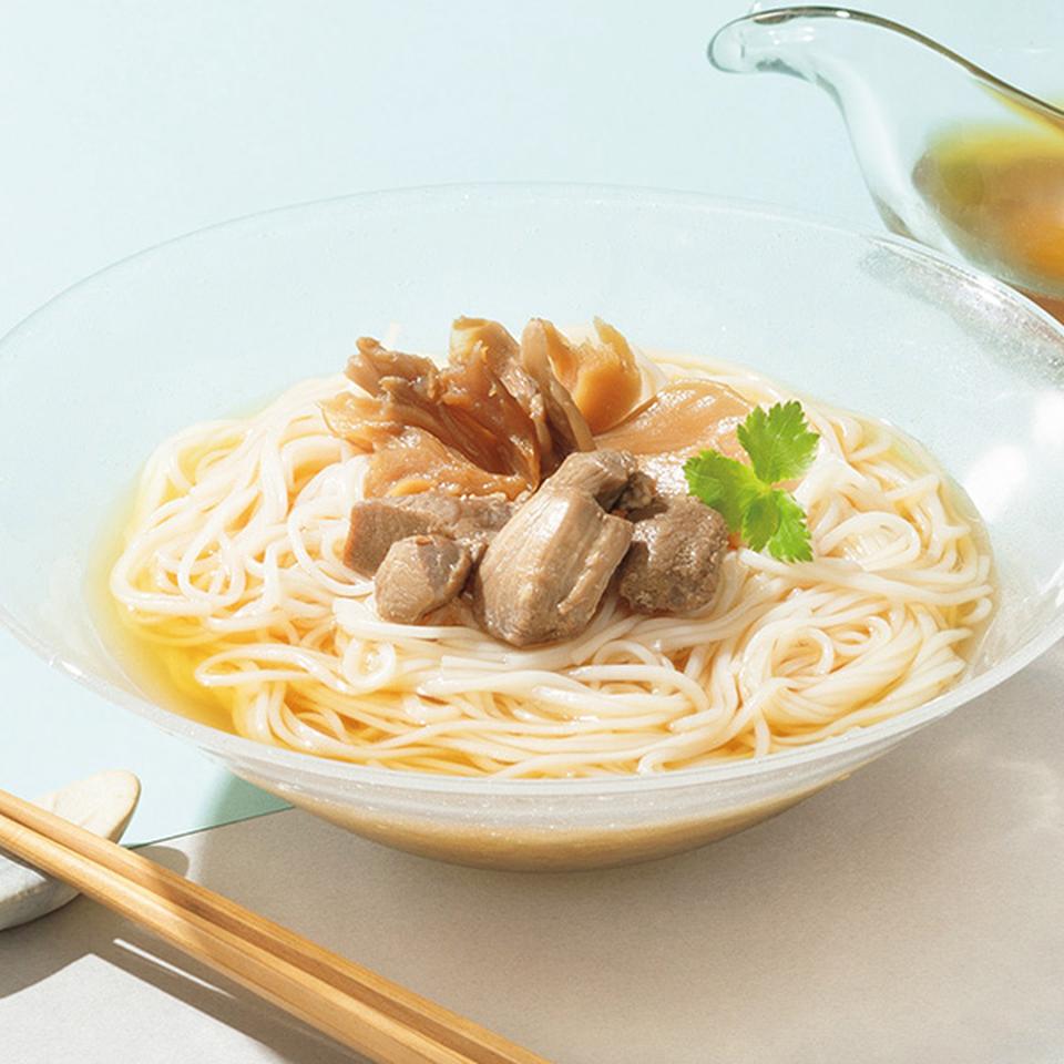 ●原料原産地:冷凍稲庭そうめん(秋田県)、具入り比内地鶏ダシつゆ(秋田県)