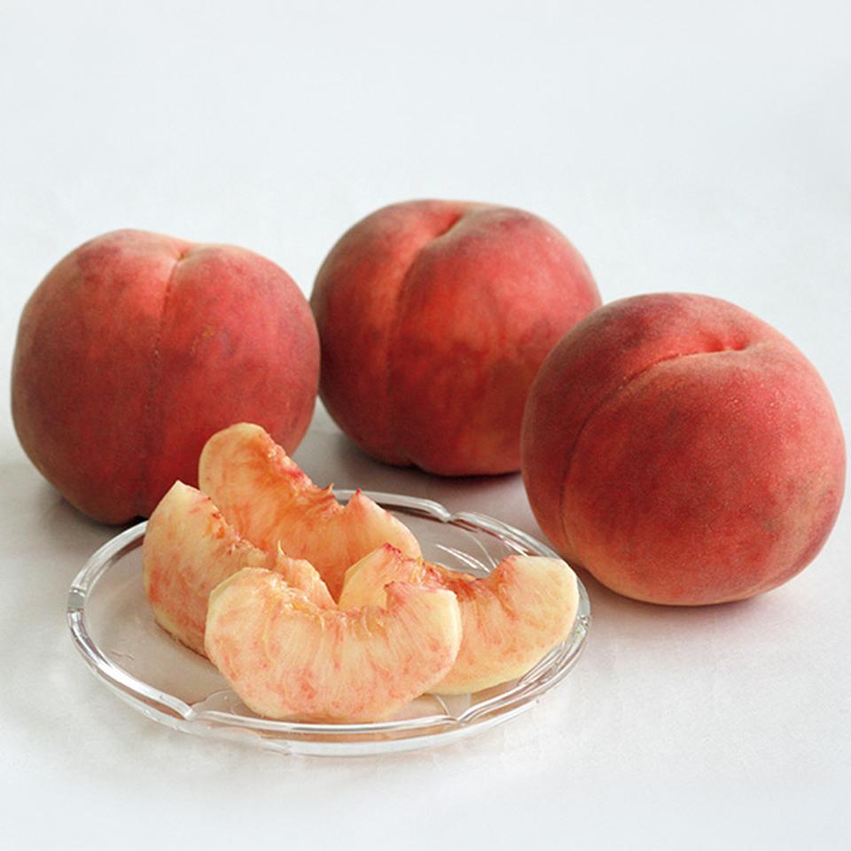 夏ももの「あかつき」。緻密な肉質で適度な柔らかさがあり、みずみずしい甘さが特徴です。