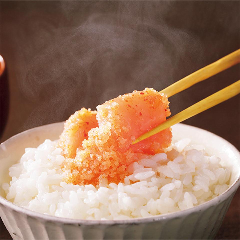 匠のたれにじっくり168時間漬け込んだコクのある辛子明太子です。製造過程で派生した明太子の端が切れた切子です。真空パッケージした見栄えの良い明太子切子です。