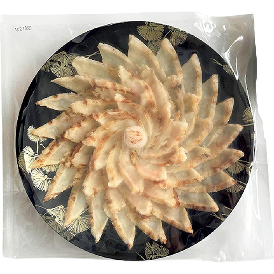 近海天然ふぐを香ばしく炙り、たたきにしました。ふぐの旨みと炙った香ばしさが楽しめます。添付のオリジナルのポン酢で召し上がりください。