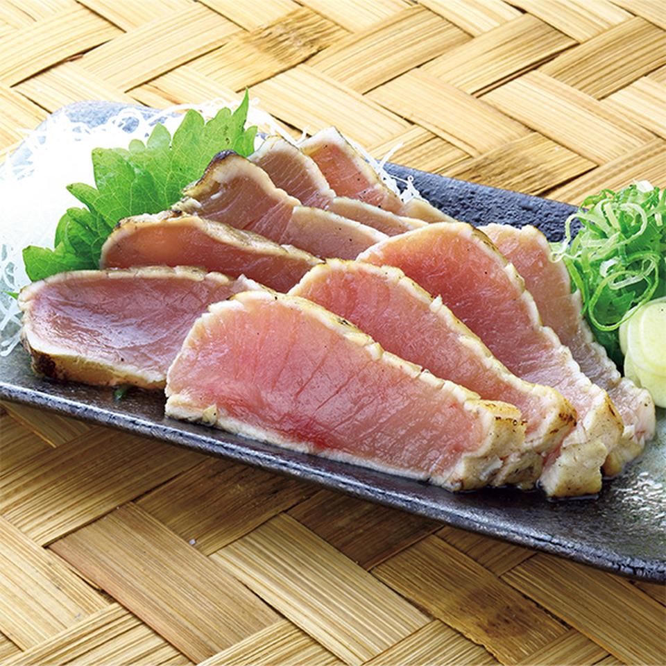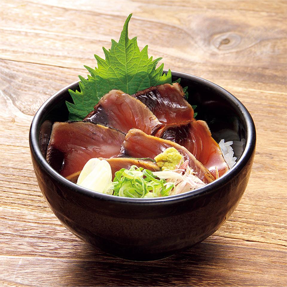 一本釣りの鰹とびんちょう鮪の藁焼きたたきに、鰹たたき丼を加えてお届けします。