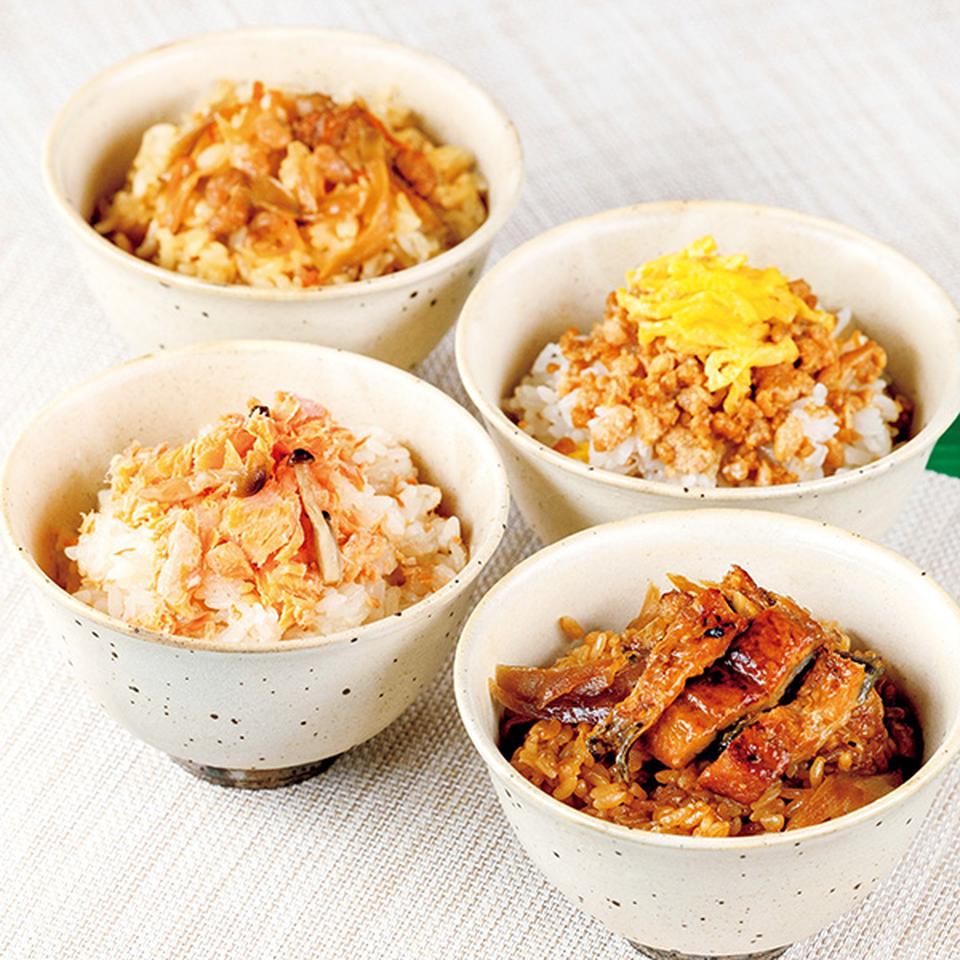 うなぎおこわ・紅鮭ときのこのおこわ・華味鳥のそぼろ寿司・華味鳥のかしわごはん 各125g×2 計8