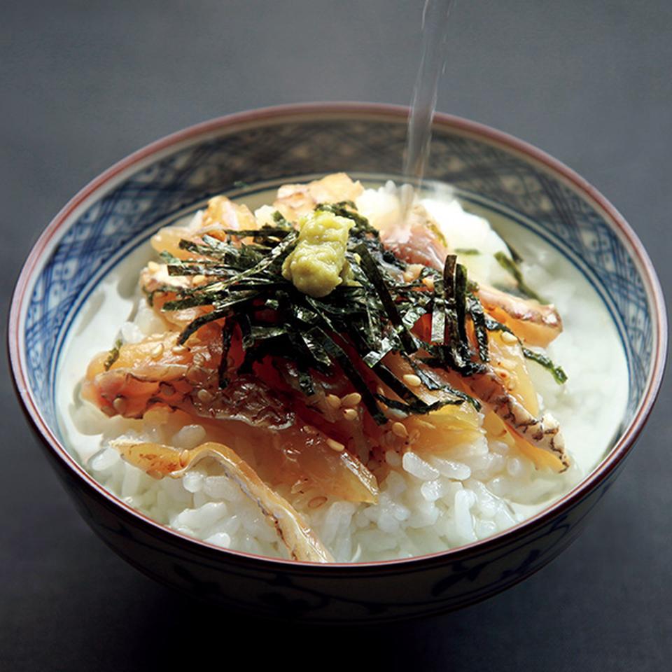 「長崎俵物」認定の本格炙り茶漬け。真鯛や真あじを醤油ベースのたれに漬け込み、海鮮丼やお茶漬けで楽しめる贅沢な一品です。
