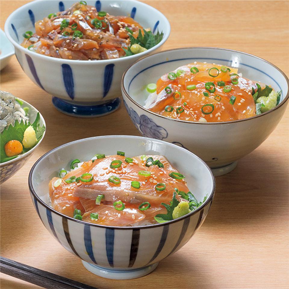 真鯛りゅうきゅう漬け丼用70g×2、ぶりりゅうきゅう漬け丼用70g×2、あじりゅうきゅう漬け丼用70g×2、わさび2.5g×6