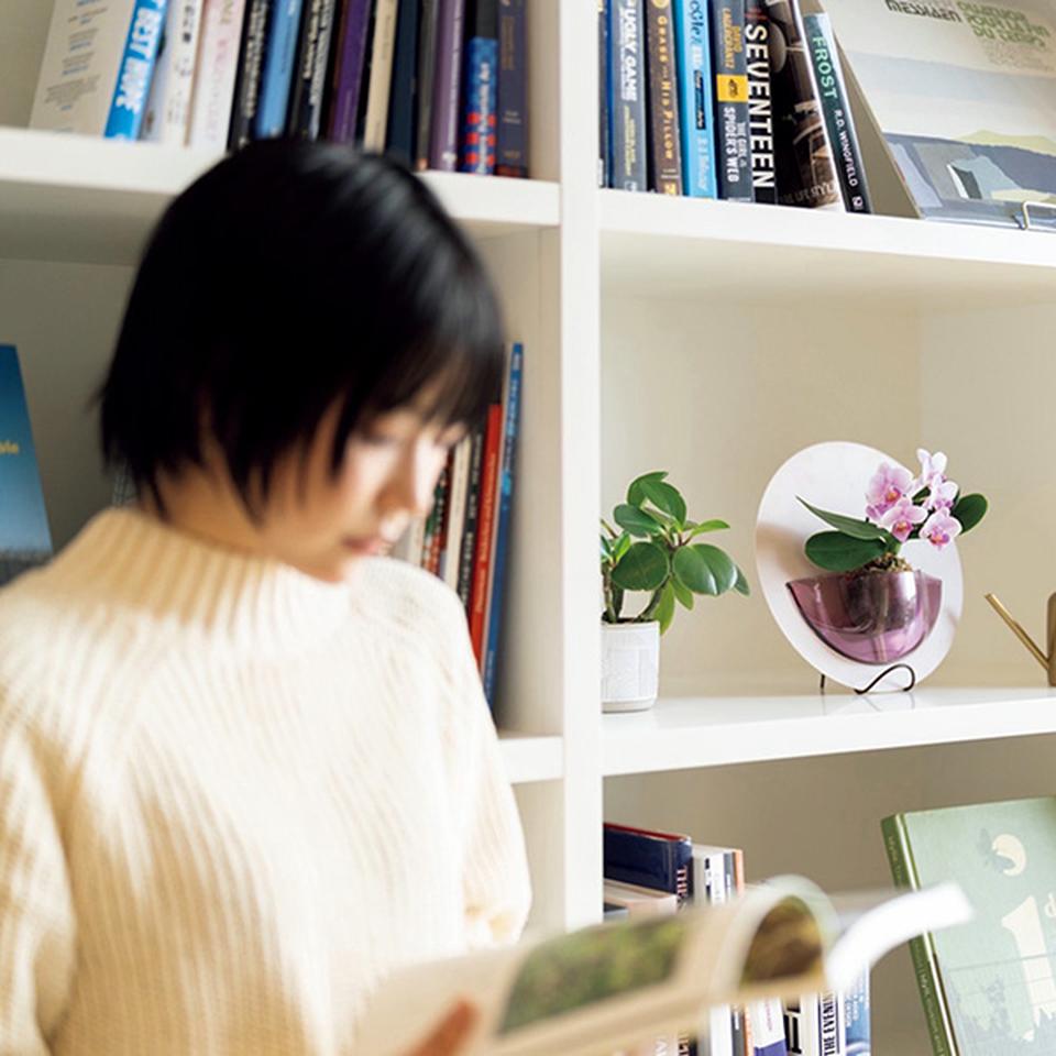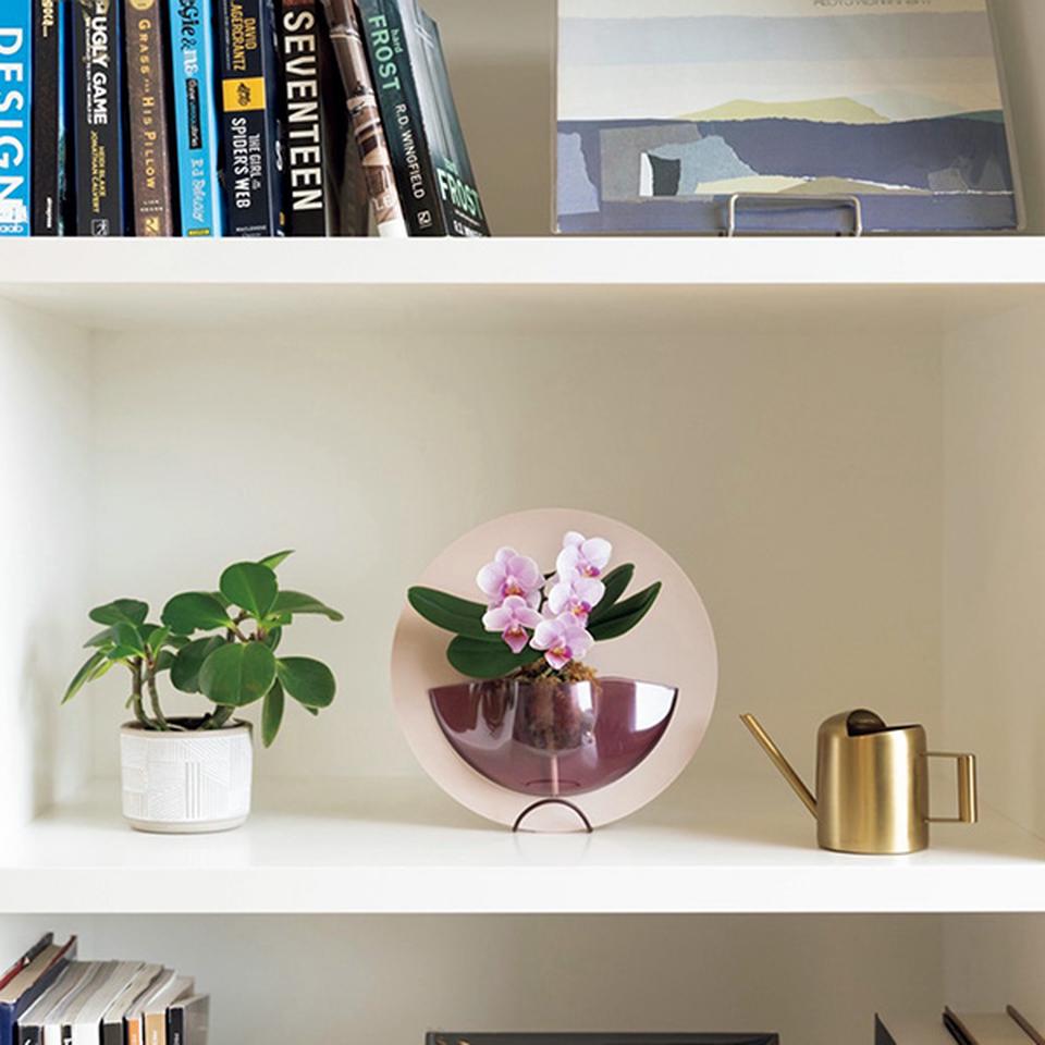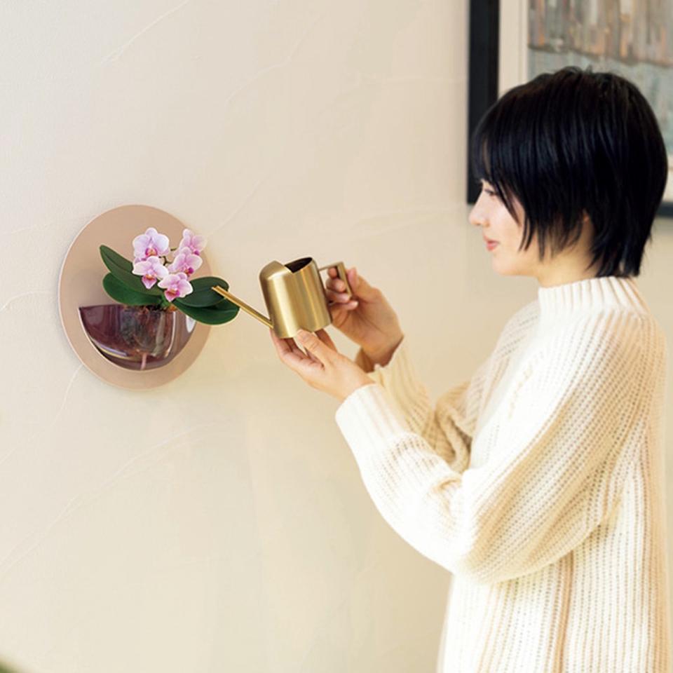 壁掛けでもスタンドでも楽しめる、新しいスタイルの小さな胡蝶蘭です。水のみえる底面給水の鉢に植えてあるので水やりも簡単です。