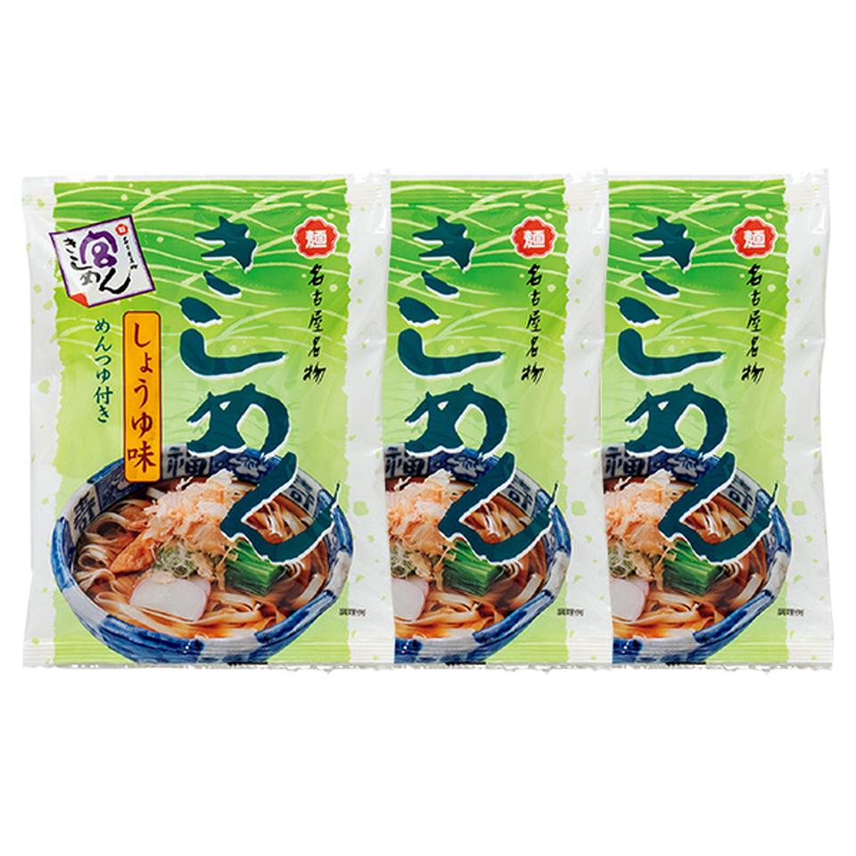 かつお風味のしょうゆ味と夏の涼味ざるきしめん、コクのあるみそ煮込、白だしつゆのおすまし味の詰合せ。