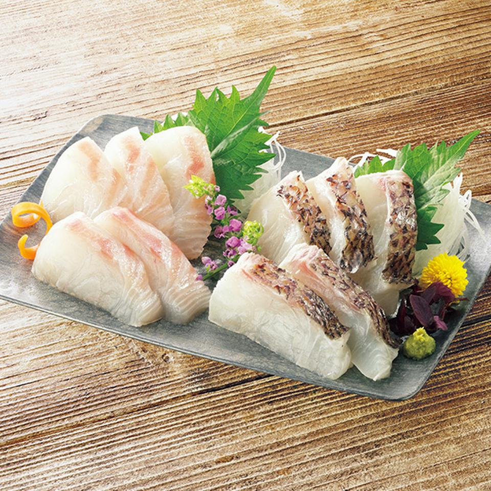 三重県の養殖真鯛はさっぱりした後味が好評。スライスするだけで旨い刺身を楽しめます。