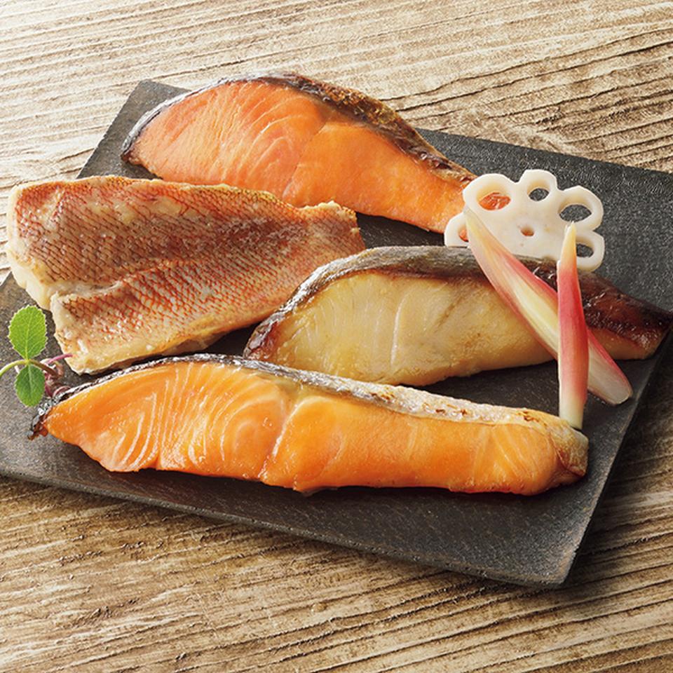 銀鱈味噌漬焼50g×2、銀鮭味噌漬焼60g×2、銀鮭甘塩漬焼60g×2、赤魚味噌漬焼60g×2