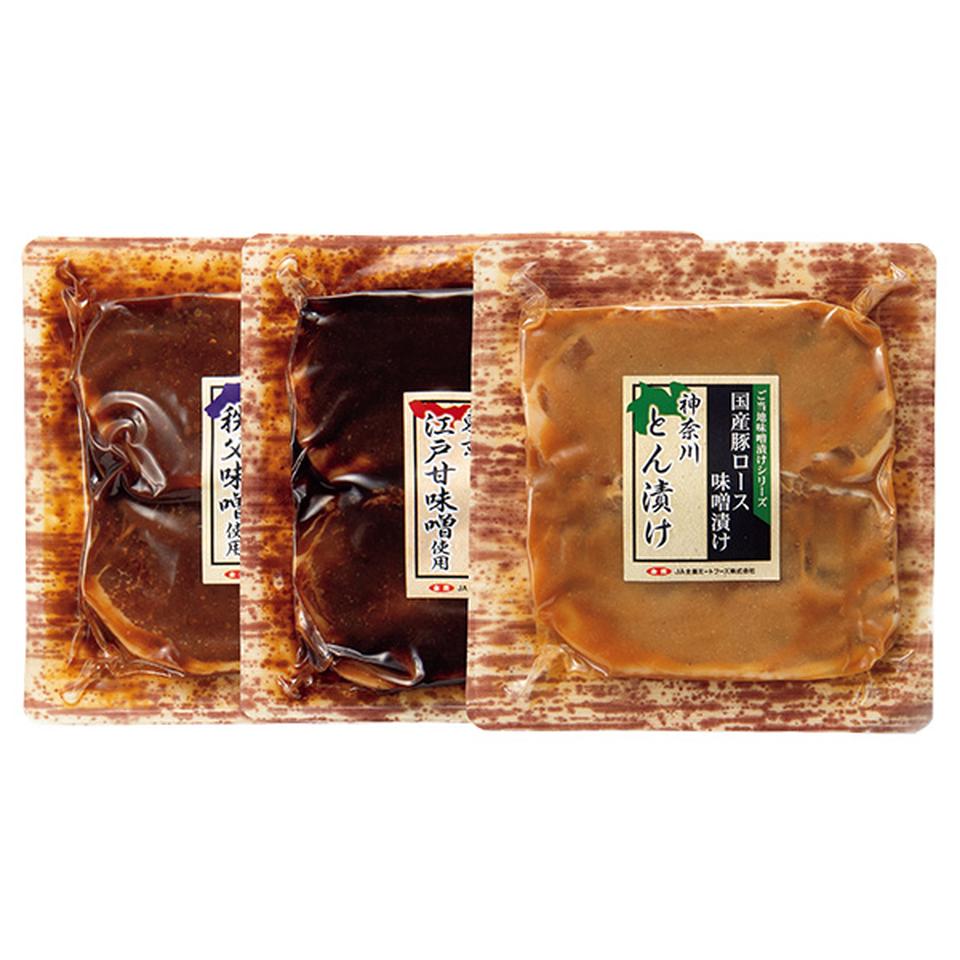 国産の豚ロースを使った、神奈川・東京・埼玉のご当地味噌漬け3種のセット。