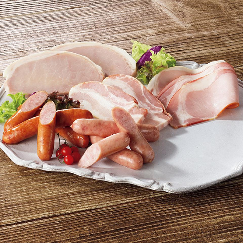 国産豚肉ならではの旨みを活かしながら、職人が丁寧につくり上げたハム、ベーコン、ウインナーのセット。