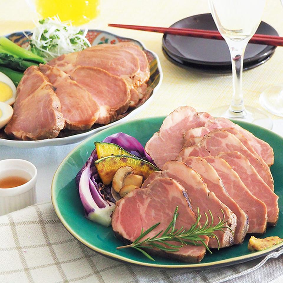 国産米で育った国産豚「豊穣豚」を使用した、チャーシューとローストポークのセットです。