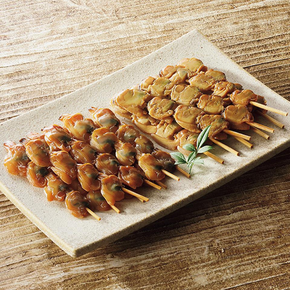 こだわりのたれで柔らかく仕上げた焼蛤と伝統の佃煮製法で煮上げたあさり串の詰合せ。
