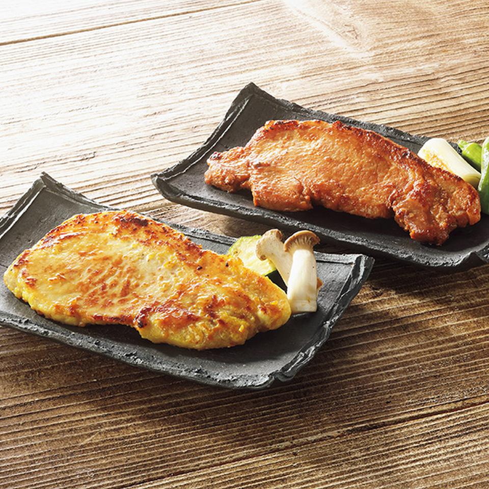 香り高い赤味噌、上品な甘みの西京味噌。2種類の味噌に国産豚ロース肉を漬け込みました。