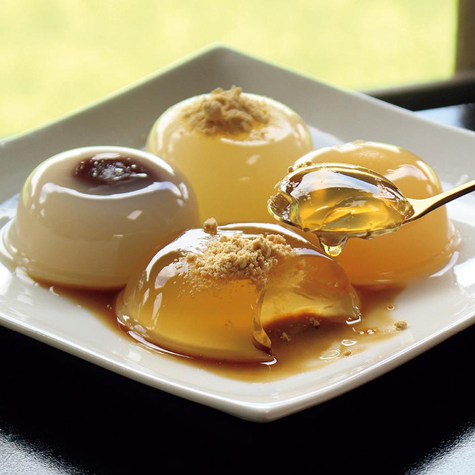 ぷるるん(葛餅・あずき・黒蜜・白桃)各3