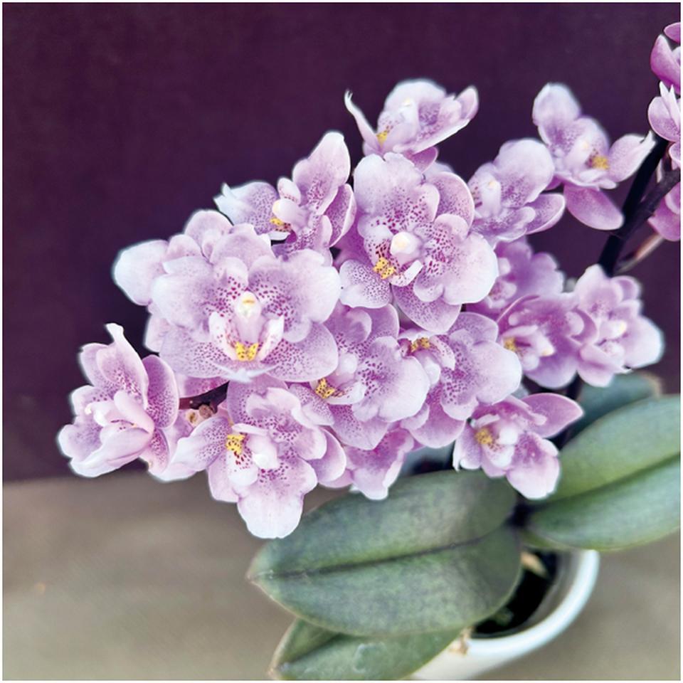 フリンジ咲きの珍しい花弁が特徴の胡蝶蘭です。青みかがった桜色が美しく上品な雰囲気です。