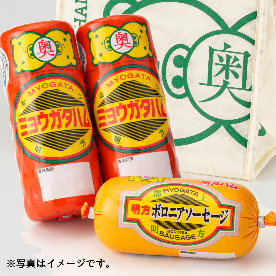 【セット内容】明方ハム350g×2、明方ボロニアソーセージ220g×1