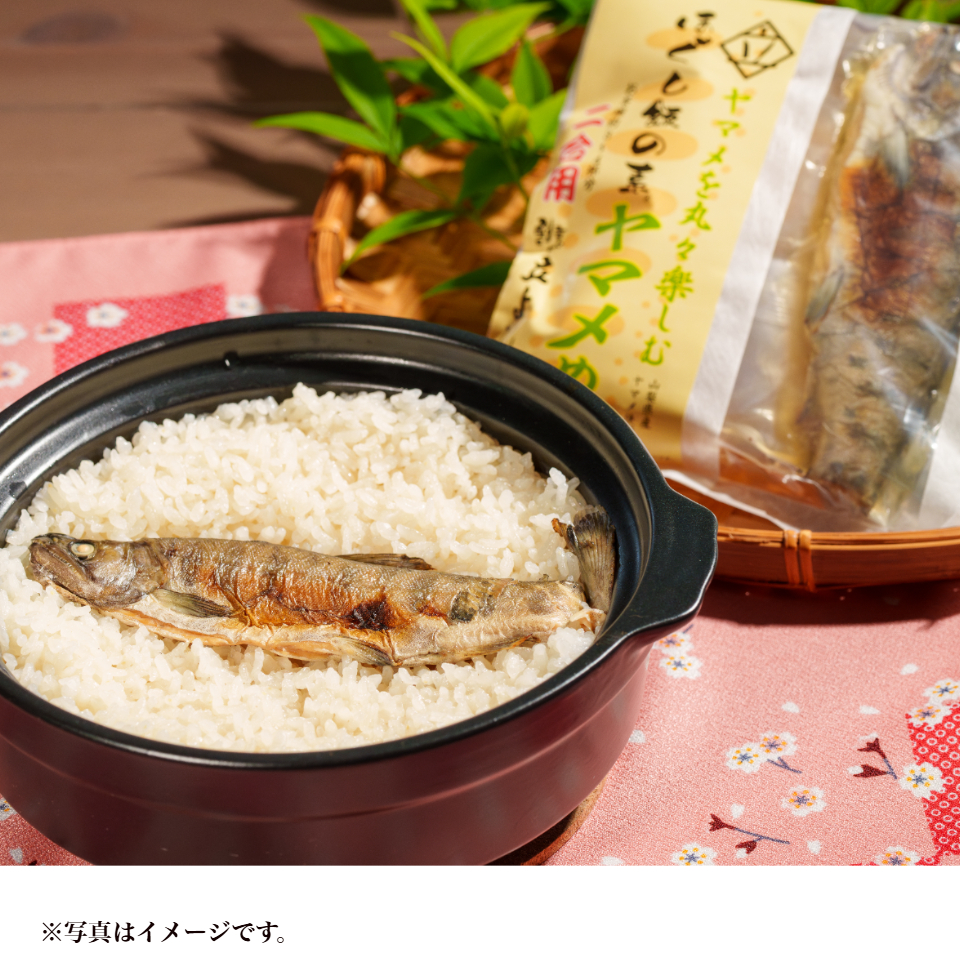 ヤマメを丸ごと一本使った贅沢なほぐし飯です。骨や頭などもお気になさらずほぐして混ぜて、そのままお召し上がりいただけます。