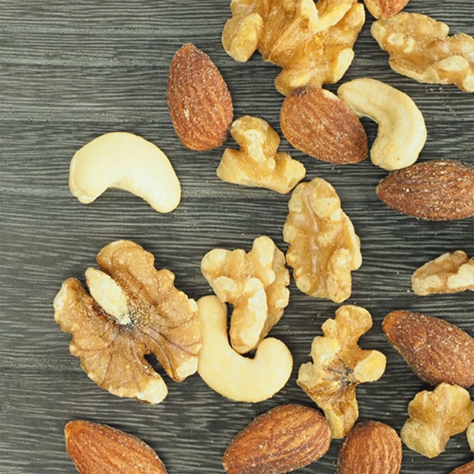 アーモンド・くるみ・カシューナッツをつかったミックスナッツ。食感のちがうナッツを一度に楽しめます。