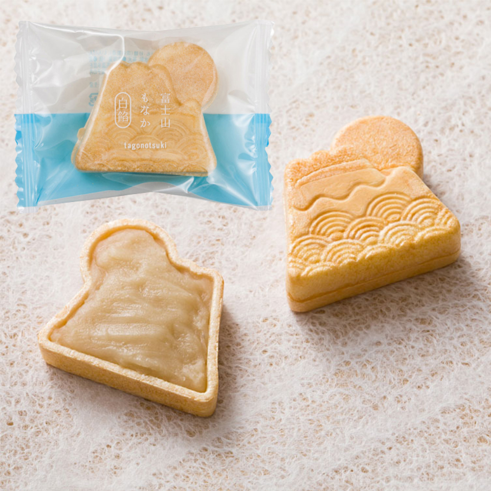 北海道十勝産小豆と富士山の湧き水でつくる自家製餡(つぶ餡と白餡)を、富士山型の可愛らしいもなか種で包みました。